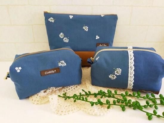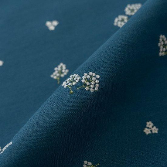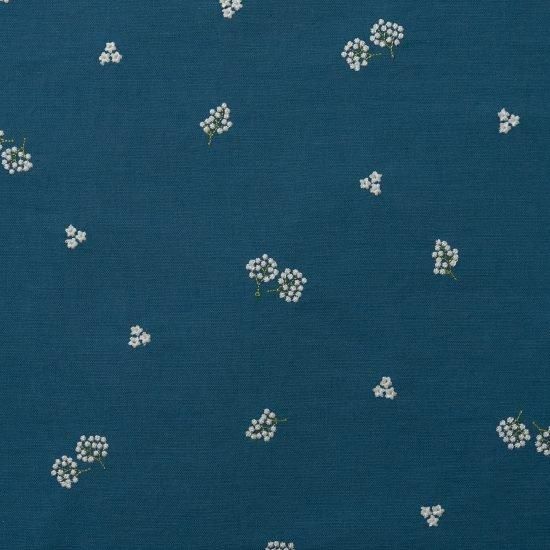 水通し不要♡適度なハリがあり洋裁初心者の方にも縫いやすい国産綿ポリダンガリー生地に、可憐なカスミソウの刺繍を散りばめました